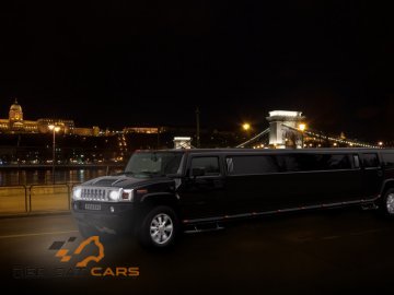 È vietato mangiare e portare cibo a bordo delle limousine. Lunghezza 11 metri, TV LCD + DVD, finestre oscurate, sedili in pelle, barre aggiuntive, iPod, USB. Il prezzo è per 1 ora. Per 2 ore: 320 Euro; 3 ore-420 euro; ore aggiuntive-100 euro. Al di fuori di Budapest supplemento di 1,5 euro/km. Trasferimento dall'aeroporto-245 euro. Trasferimento dall'aeroporto all'aeroporto - 240 Euro. Andata e ritorno - 385 euro.